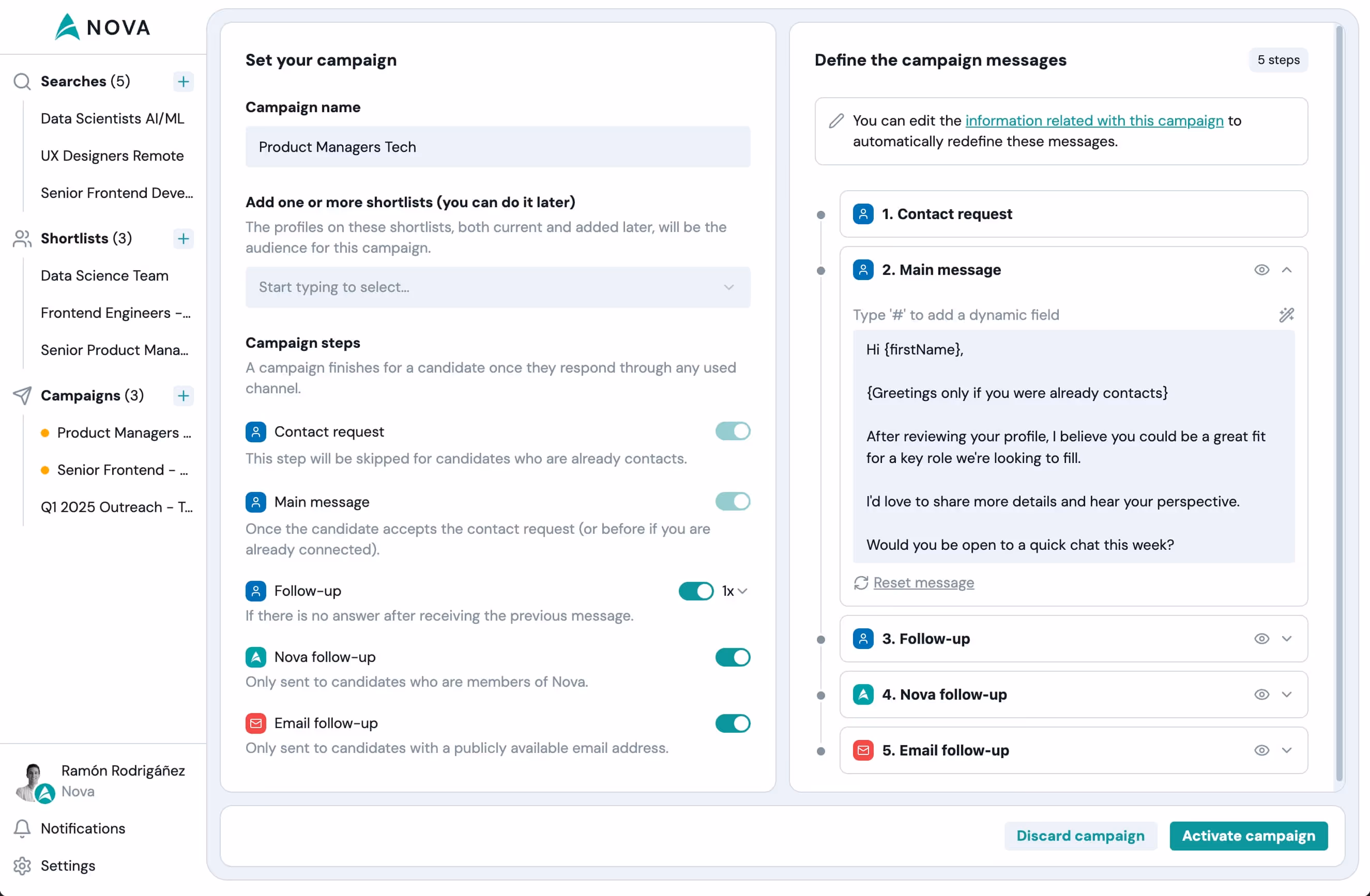 - Multichannel outreach (Email, Nova, and other professional networks)